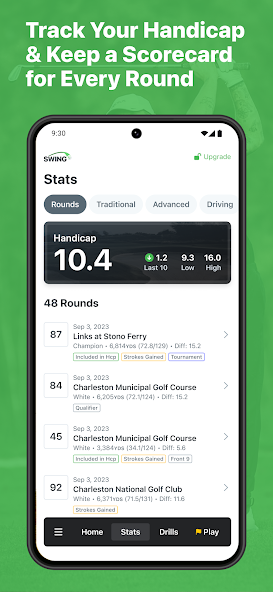 • Pelacak handicap gratis setelah memposting skor dari 3 putaran